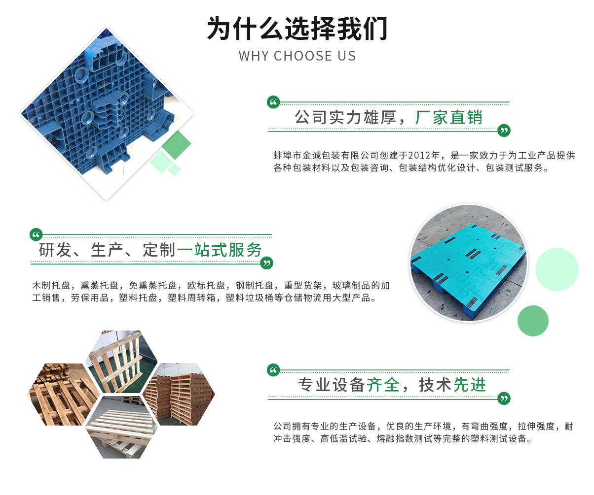 蚌埠市金誠包裝有限公司創建于2012年,是一家致力于為工業產品提供各種包裝材料以及包裝咨詢、包裝結構優(yōu)化設計、包裝測試其中包括木制托盤,熏蒸托盤,免熏蒸托盤,歐標托盤,鋼制托盤,重型貨架,玻璃制品的加工銷售,勞保用品...